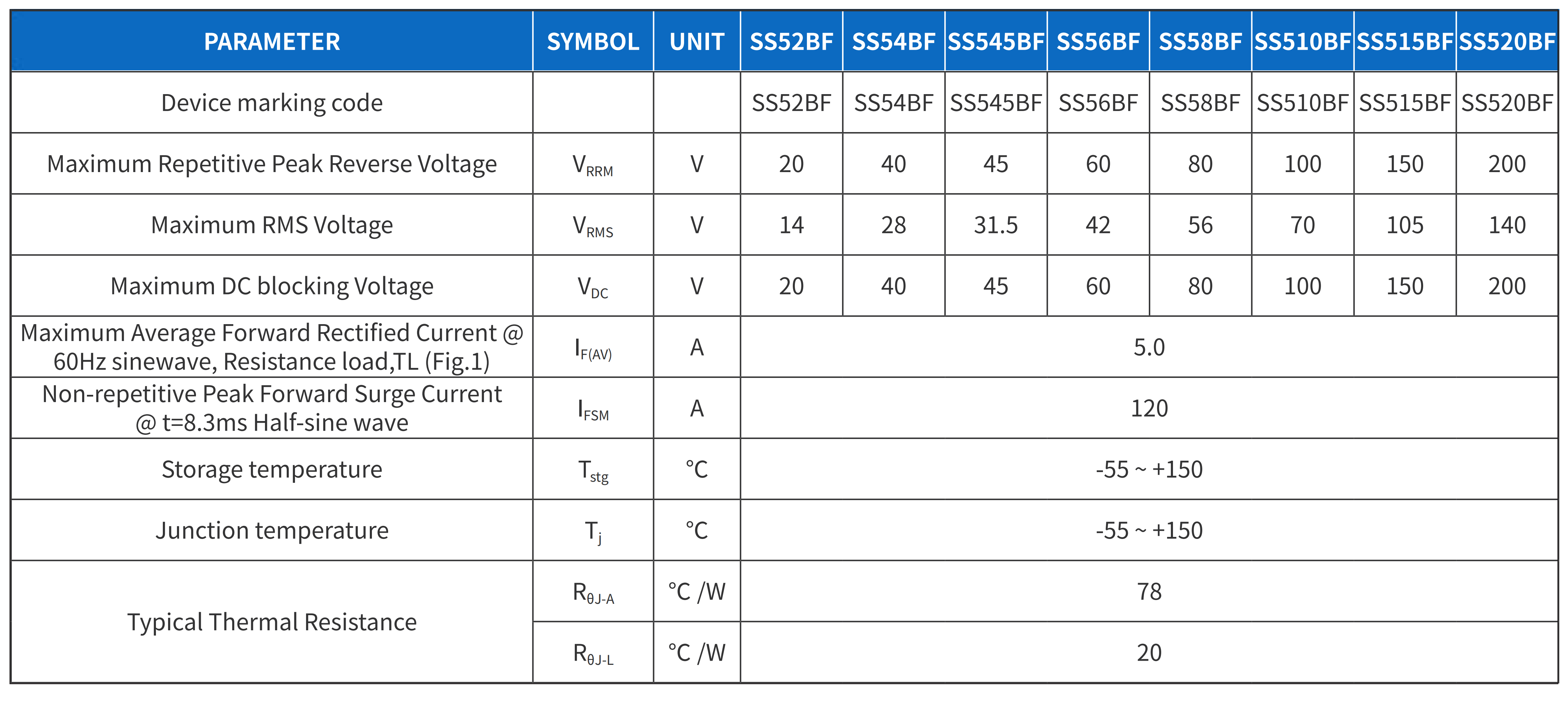 | SS58F | SMAF | -55~+150 | 80 | 5 | 100 | 0.85 | 5 | 0.05 | 5 | 160 | 申請樣品 | |